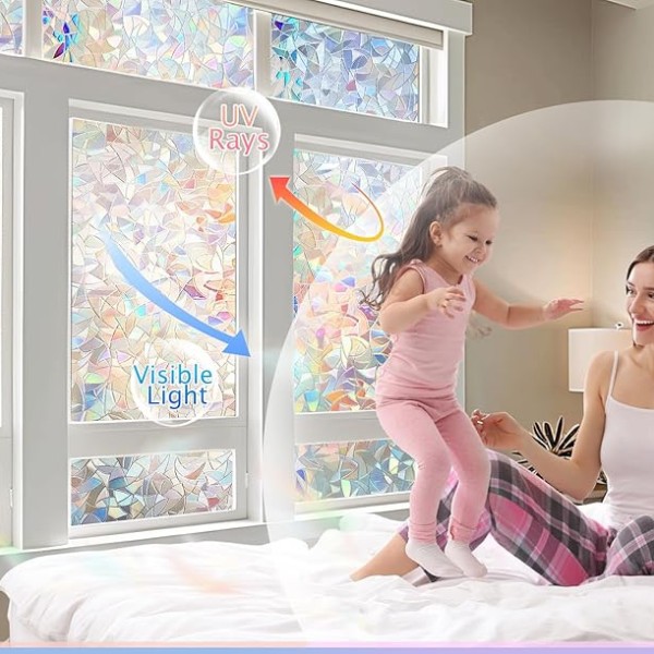 Kada sunčeva svjetlost dospije u film, stvara očaravajuću dugu boja po prostoriji, ali ne blokira prirodno svjetlo. Ova folija dobro funkcionira u bilo kojoj prostoriji – dnevnim boravcima, kupaonicama, uredima, pa čak i na staklenim vratima, što ju čini sveobuhvatnim rješenjem za različite prostore.
