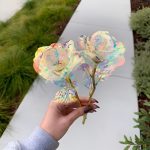 Svaka ruža izrađena je s iridescentnim, holografskim premazom koji prekrasno svjetluca na svjetlu, stvarajući sjaj poput galaksije koji je jednostavno očaravajući.