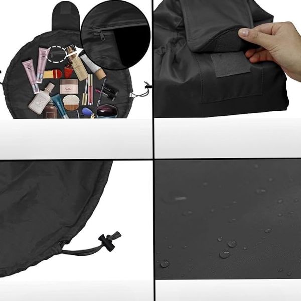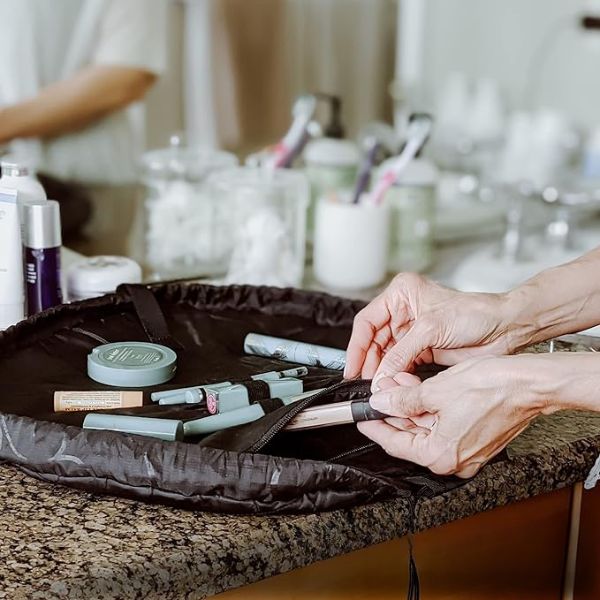Uživajte u skladištu bez muke uz GLAMSY. Jednostavno povucite uzicu kako biste torbicu skupili u kompaktnu veličinu prikladnu za putovanja. Savršena je za vaš ruksak ili prtljagu i održava vaše kozmetičke alate organiziranima i zaštićenima od oštećenja. Sa svojim golemim kapacitetom za pohranu i praktičnošću, ova čarobna torbica nezaobilazni je dodatak za skrivanje svih potrepština za njegu kože.