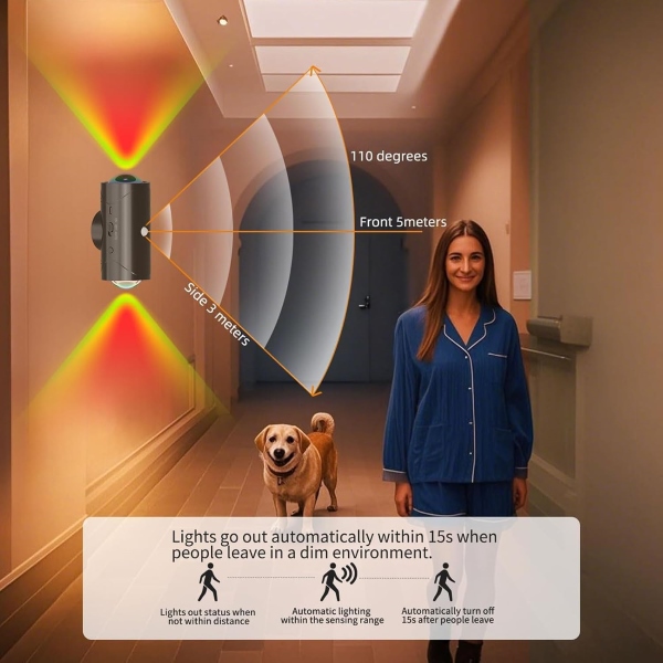 Otkriva ljudski pokret u tamnim prostorima i uključuje se na 15 sekundi, zatim se isključuje radi uštede energije.