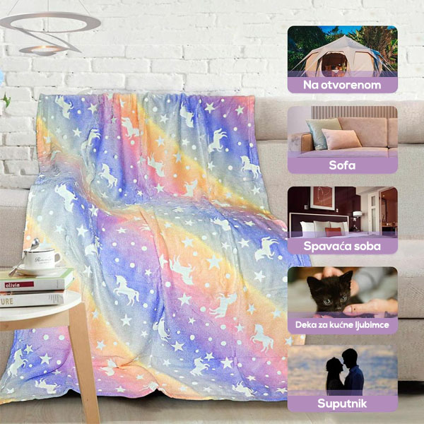 Ugodan i topao pokrivač emitira svjetlost tijekom noći! Možete odabrati uzorak jednoroga ili dinosaura!