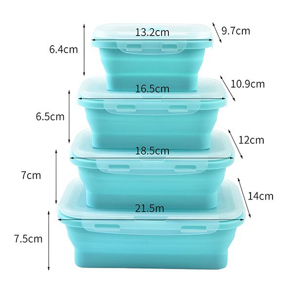 📦 Paket Uključuje: 4x Sklopive Silikonske Posude (350 ml, 500 ml, 800 ml, 1200 ml)